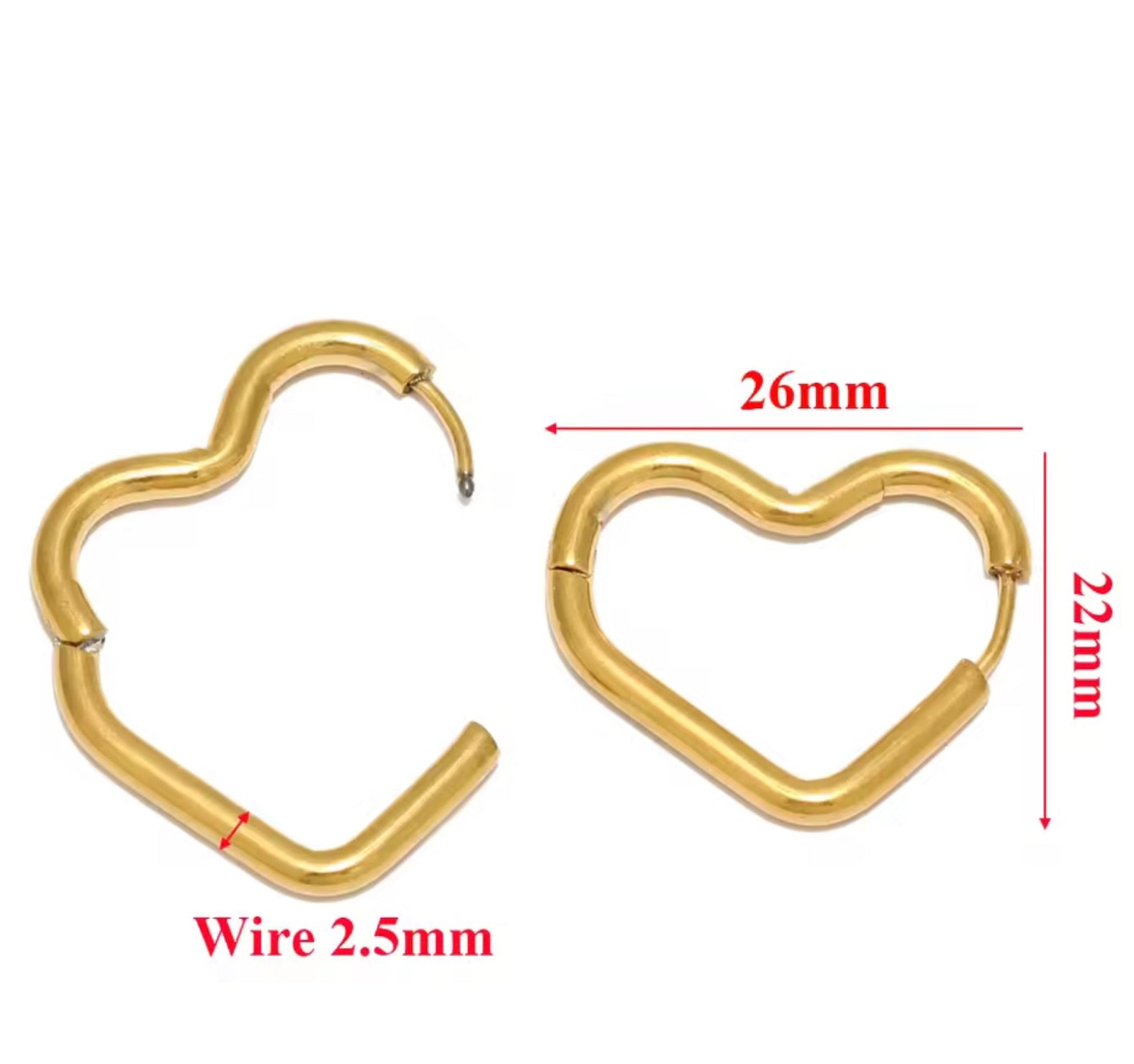26mm x 22mm Heart Hoop Earrings - 2.5mm thick Stainless Steel