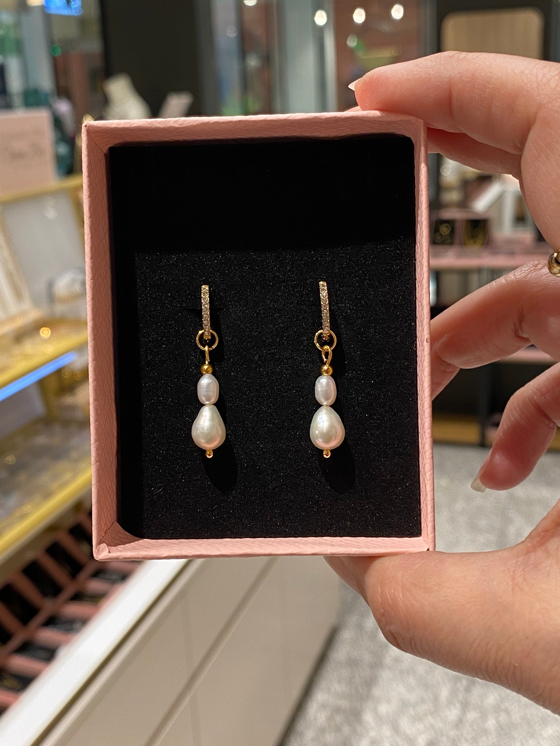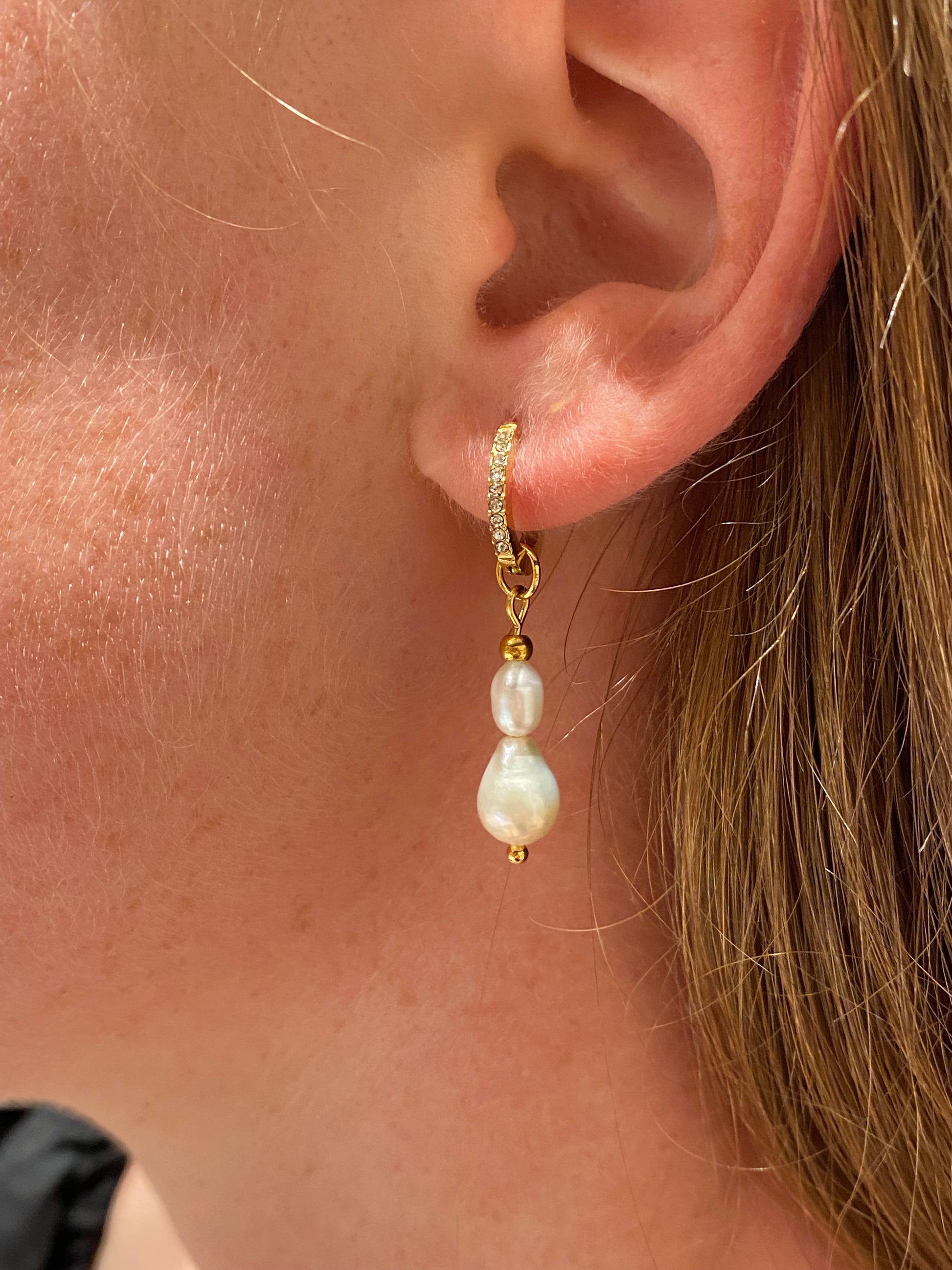 These Eva earrings are a part of our Interchangeable Earring Collection. Go from Everyday Crystal Hoops to an Elegant Beautiful Pearl Look in just seconds by adding the Pearl Charms to your earrings.